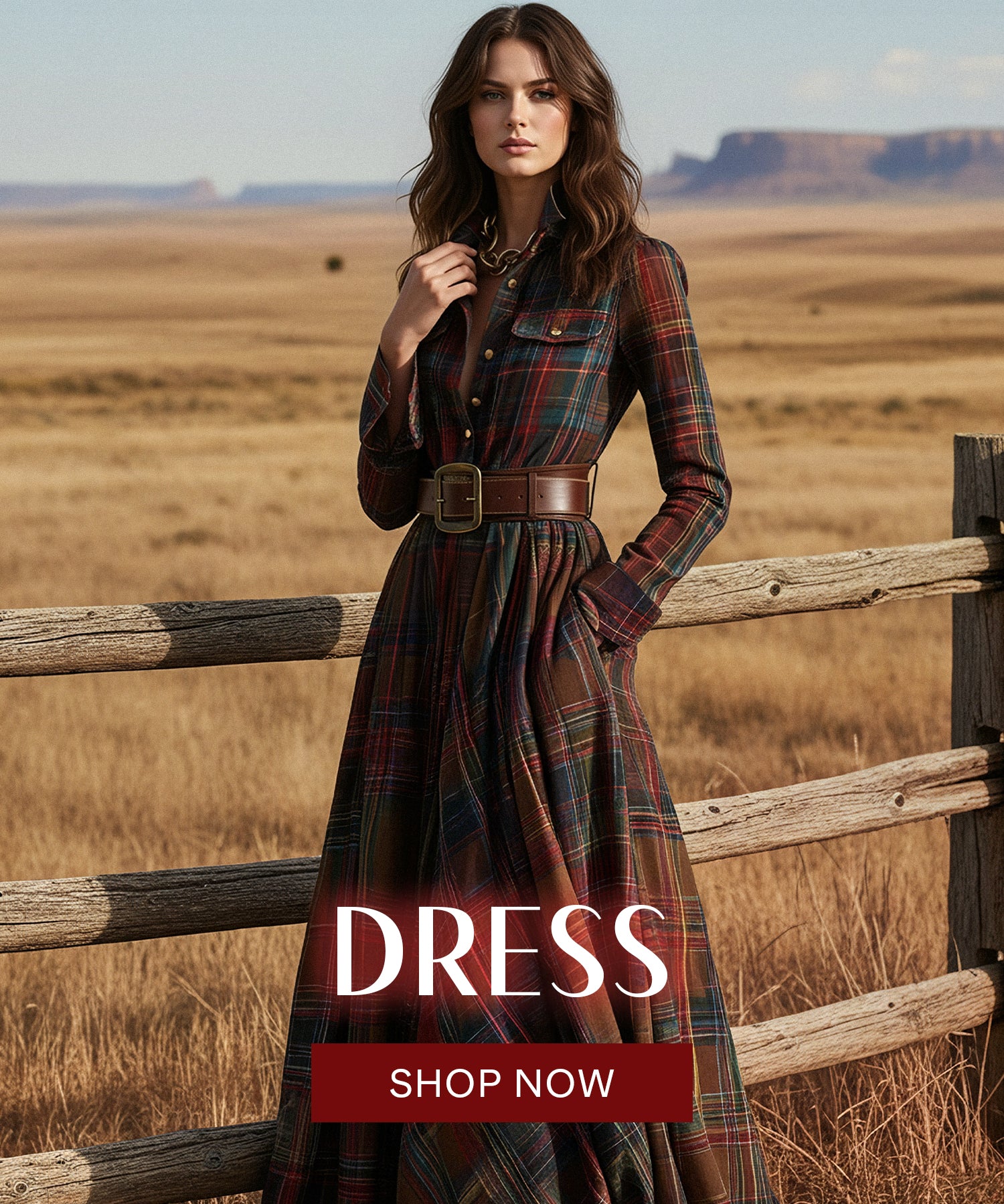 Retro-elegant Ethnic-style Brown-red Plaid Print Faux Suede Maxi DressRetro-elegant Ethnic-style Brown-red Plaid Print Faux Suede Maxi Dress- Regular price