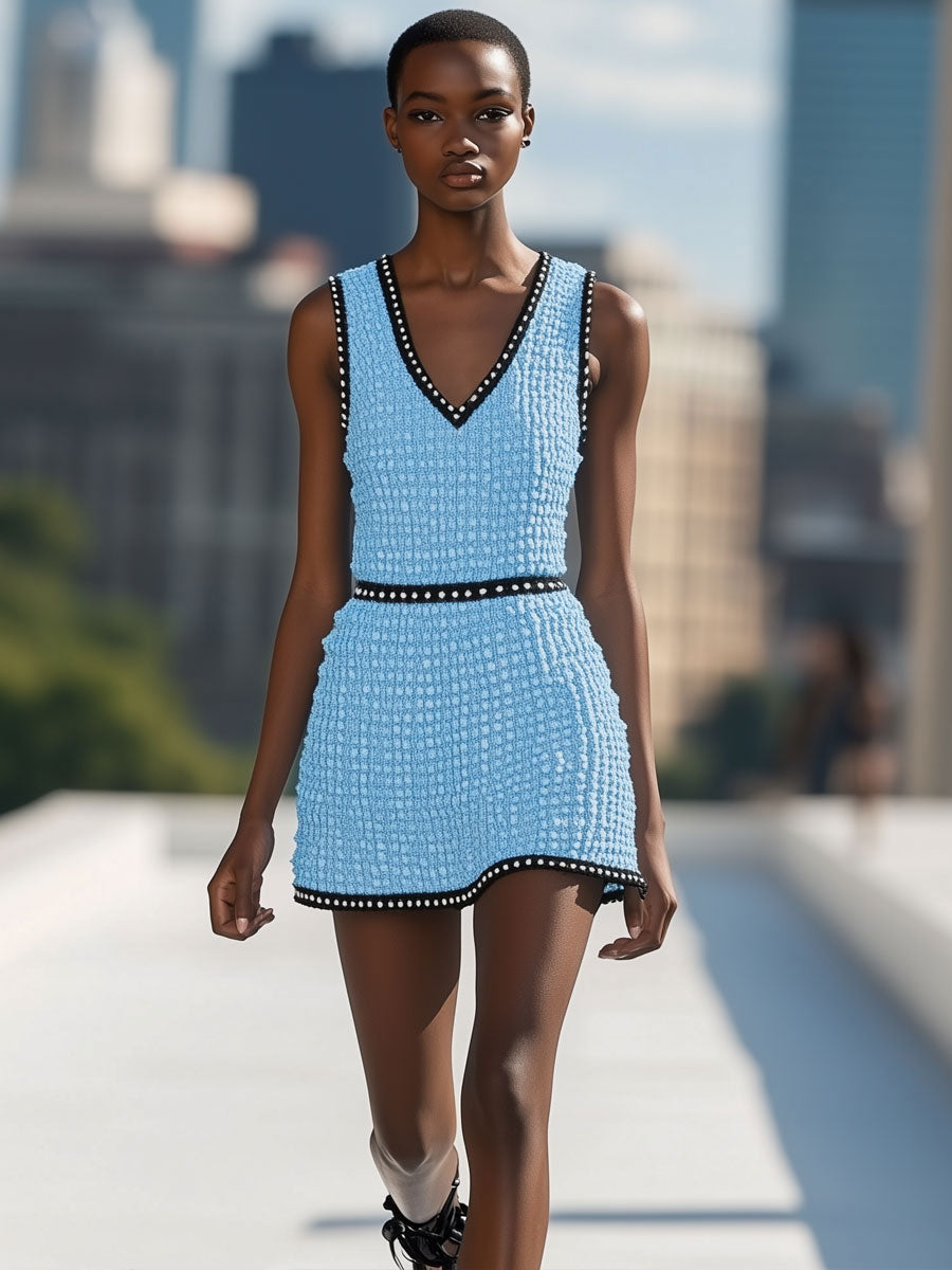 Elegant Retro Blue And Pink Knitted Sleeveless Midi DressElegant Retro Blue And Pink Knitted Sleeveless Midi Dress- Regular price