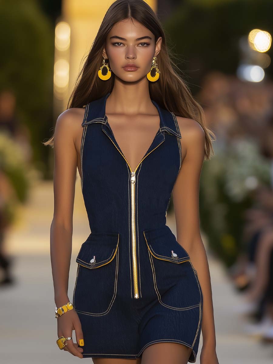 Retro Casual Zipper Stand Collar Sleeveless Midi DressRetro Casual Zipper Stand Collar Sleeveless Midi Dress- Regular price