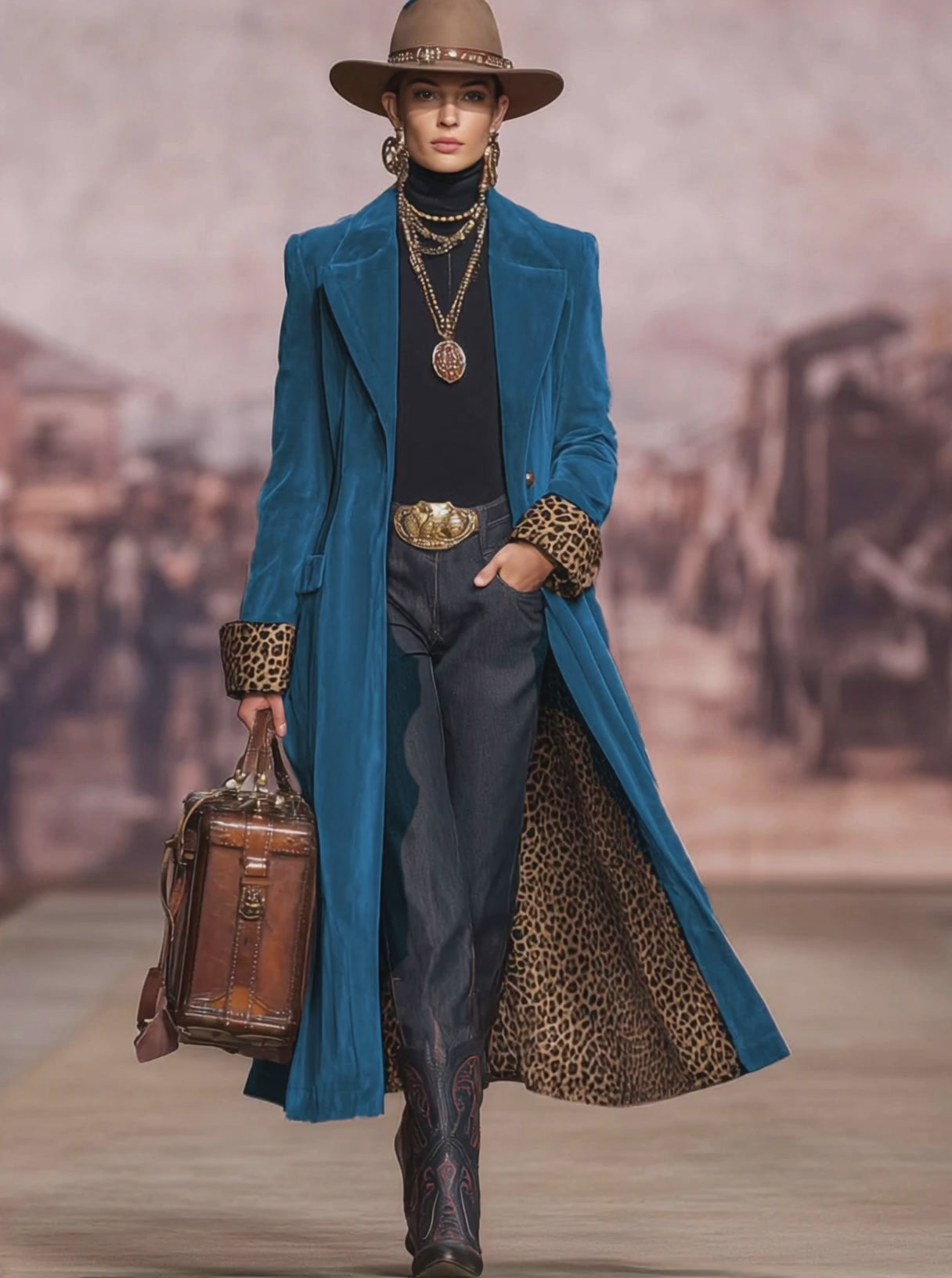 The lapel single-breasted velvet and leopard print coat is a bold and elegant piece that blends luxurious texture with contemporary edge. Crafted from soft velvet, it offers a rich sheen and smooth touch, while the leopard print accents add a fashionable contrast that instantly elevates any outfit. The structured lapel and single-breasted closure create a timeless silhouette, giving the coat a refined yet statement-making appeal.