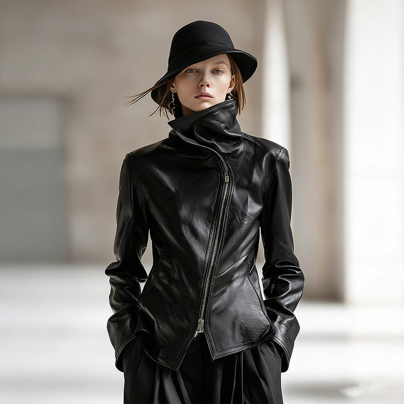 Personality And Fashion High Collar Oblique Zipper Black PU JacketPersonality And Fashion High Collar Oblique Zipper Black PU Jacket- Regular price