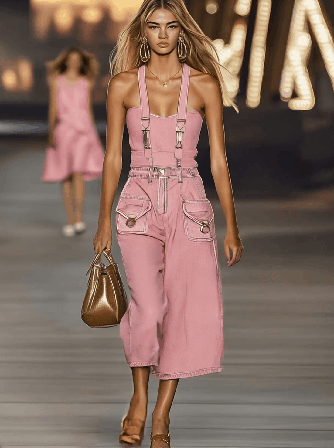 Fashionable And Casual Pink Corduroy Adjustable OverallsFashionable And Casual Pink Corduroy Adjustable Overalls- Regular price