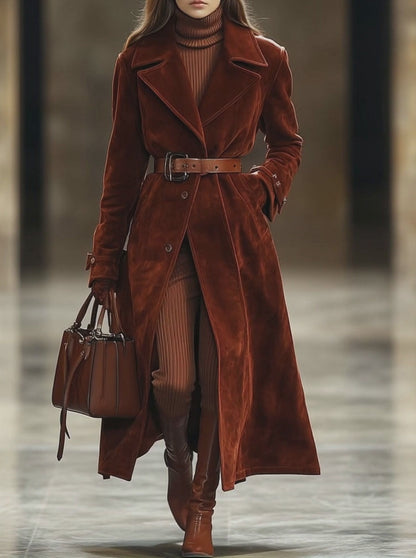This coat can be dressed up for formal events or casually worn for everyday wear. Pair it with jeans and boots for a smart, casual look, or wear it over a dress for a sophisticated evening look. Add some sleek flair to your wardrobe with this Casual Loose Vintage Angora Red Suede Pocket Lapel Maxi Coat. It combines vintage elegance with modern comfort, making it a versatile and stylish addition to your outerwear collection.