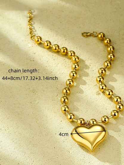 This chic necklace is an exquisite piece that brings together elegance and modern design with its beaded structure and heart-shaped charm made from 18k contrast color stainless steel. The heart charm serves as a captivating centerpiece, showcasing a striking blend of tones—such as gold and silver or rose gold—that enhances its visual appeal with a contemporary twist.